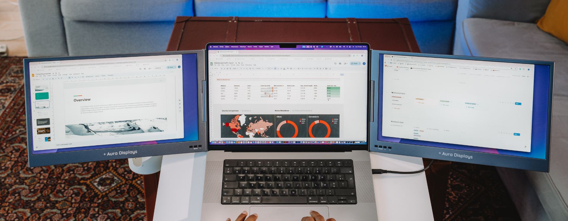The Dual Boost 15.6" Pro Max (Gen 4) is a remarkably immersive, laptop dedicated, portable monitor system, meticulously crafted by Aura Displays ✦