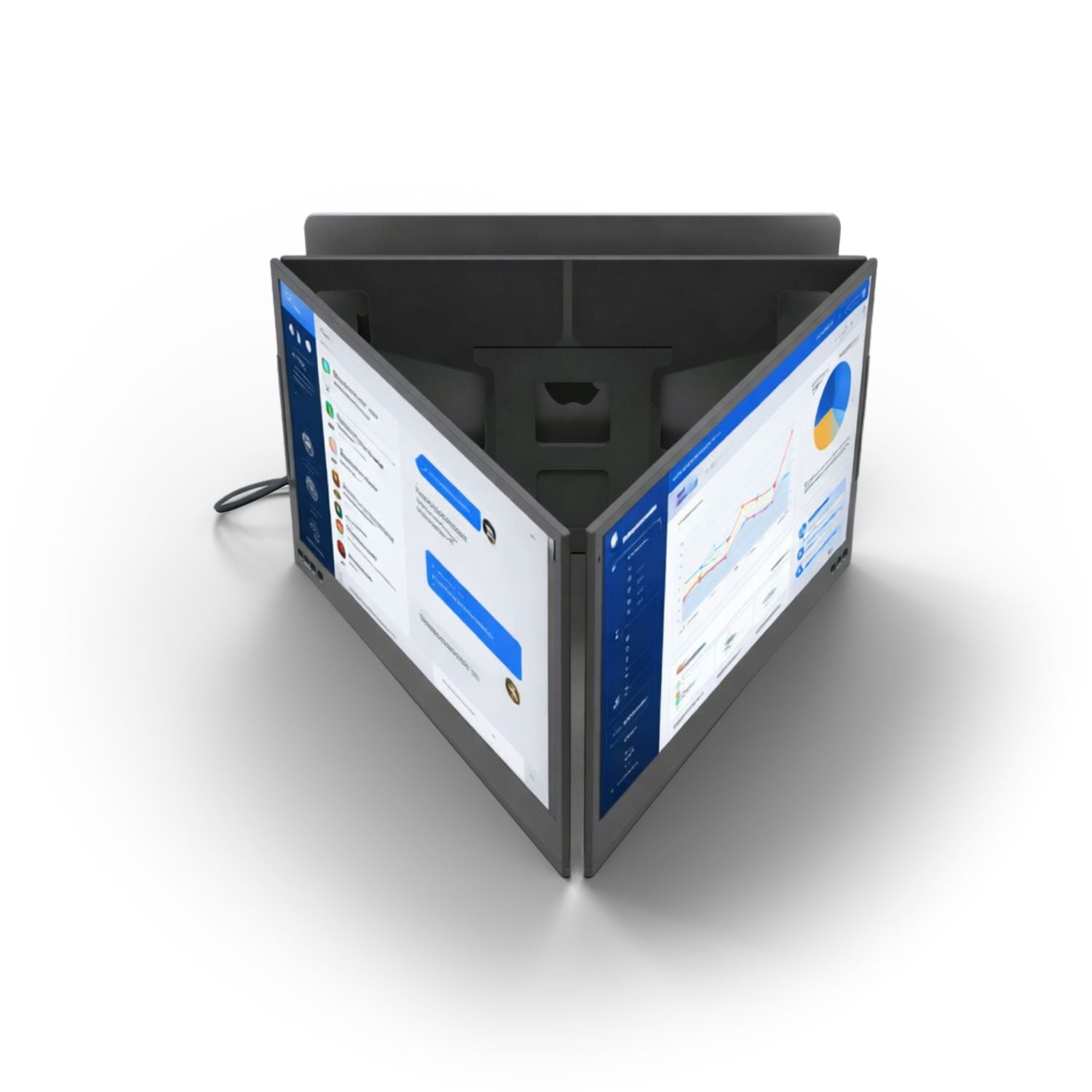 Master meetings with a triangular setup. Effortlessly connect the screens for focused collaboration, bringing your displays together for perfect teamwork and enhanced productivity.